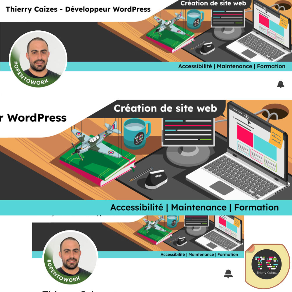 Le but est de mettre en évidence le métier de Thierry, développeur wordpress, ainsi que ses particularités (accessibilité, maintenance et formation). L’illustration explique à la fois le métier de développeur web mais également la passion de l’histoire et de la documentation.