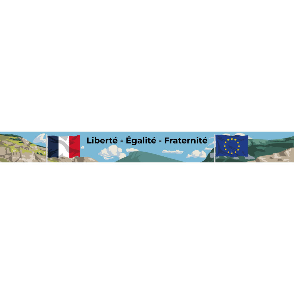 Une création supplémentaire du fronton où est inscrite la devise de la république.